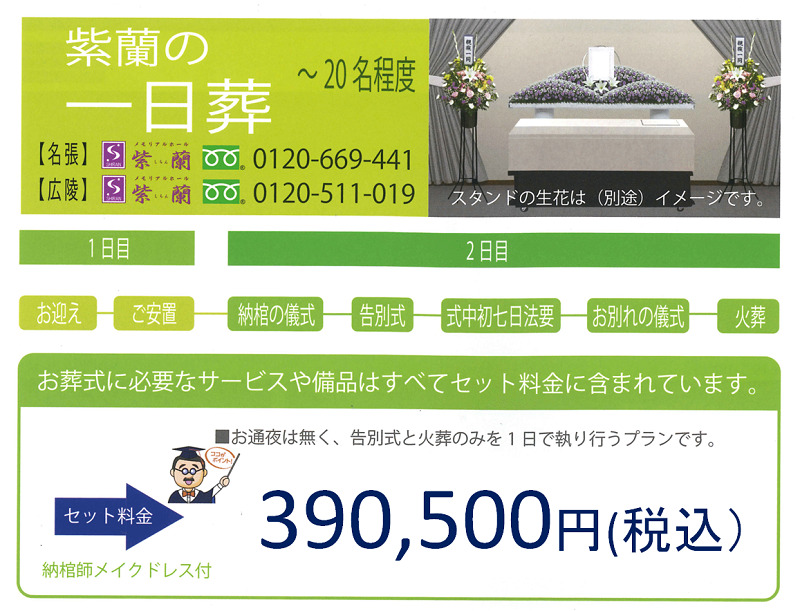 | プラン | 火葬式 | 一日葬 | 家族葬 |