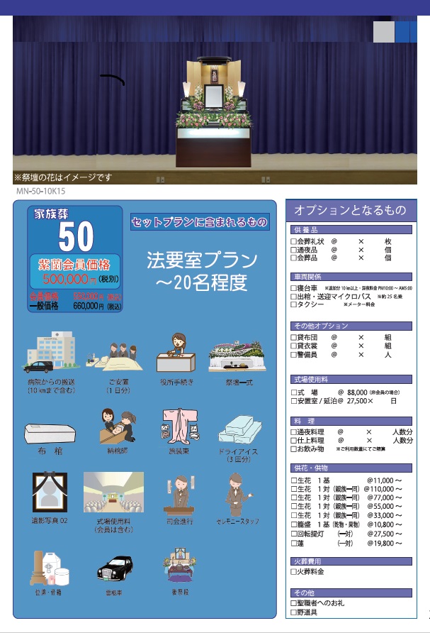 | 受付・枕飾一式 | 〇 | 〇 | 〇 |