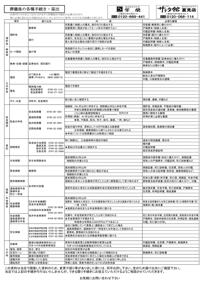 当店では下記の手続き代行はいたしませんが、できる限り手続きにお役立ていただけるようご相談させていただきます。