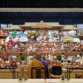 今年も、真言宗 不動院様に人形供養のお経を頂き、皆様に焼香をして頂きました。 総勢180人、ご来館を頂き多くの人形の供養が出来ました。